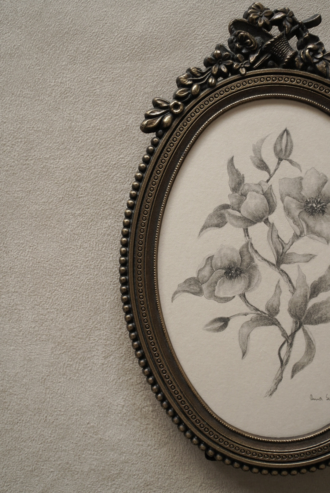 Bring a touch of timeless charm to your space with this original flower drawing, beautifully set in an authentic vintage frame made in England. Measuring 14x22cm, this delicate piece is perfect for collectors and art lovers who appreciate unique, one-of-a-kind works with character and history.