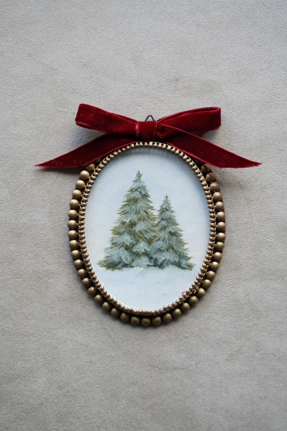 Each piece comes framed and adorned with a  velvet bow, ready to hang and enjoy — no additional framing required. Its compact 8,5 x 10cm size makes it perfect for a thoughtful gift, holiday décor, or a timeless keepsake for your home.