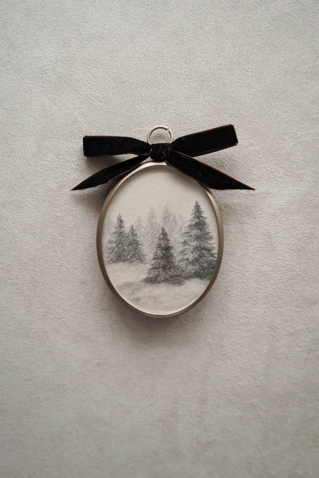 This delicate hand-drawn winter scene captures the serene beauty. Created with graphite pencils on a paper, this miniature artwork brings a touch of calm and nature’s charm to any space.